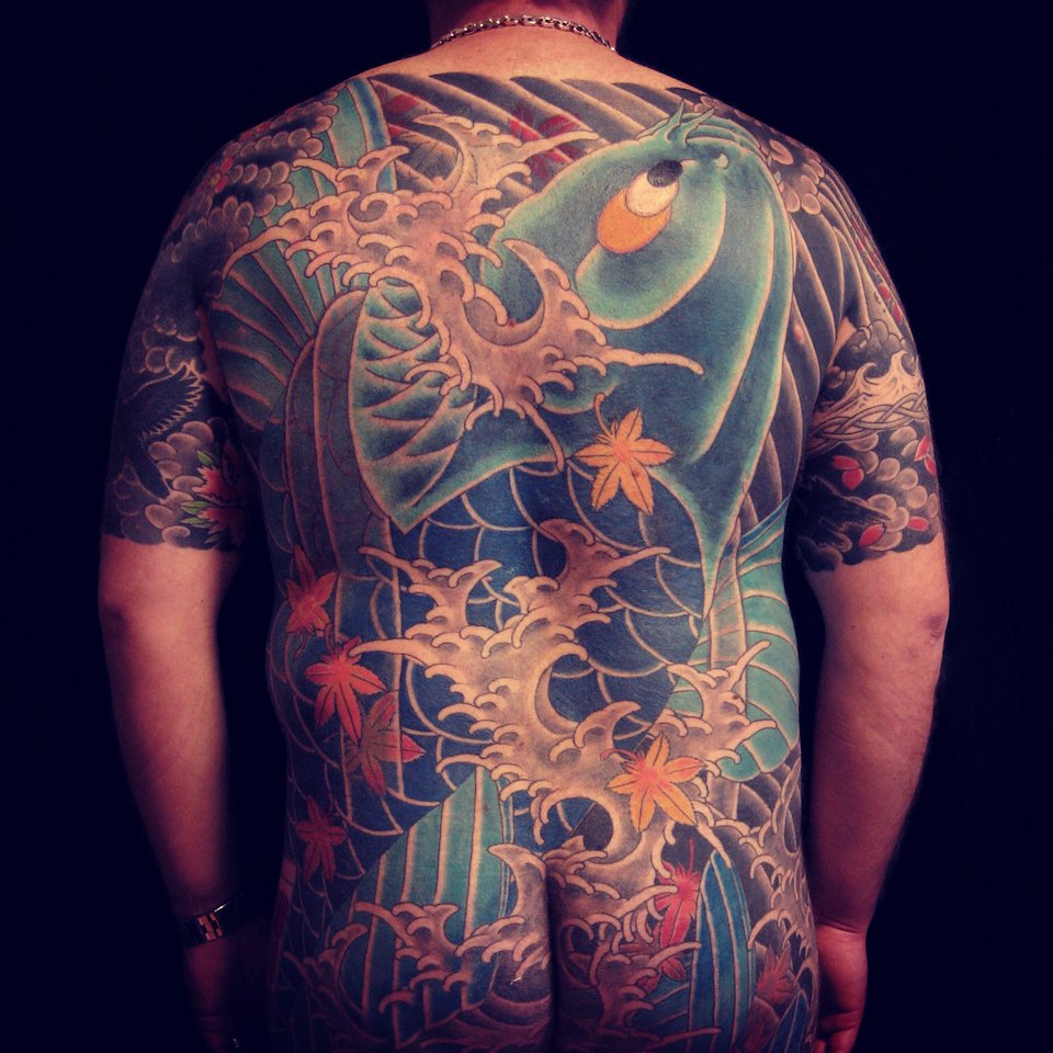 Collaboration back piece whit Mike Roper (Tiger) and left leg karashishi and all front done by Filip Leu